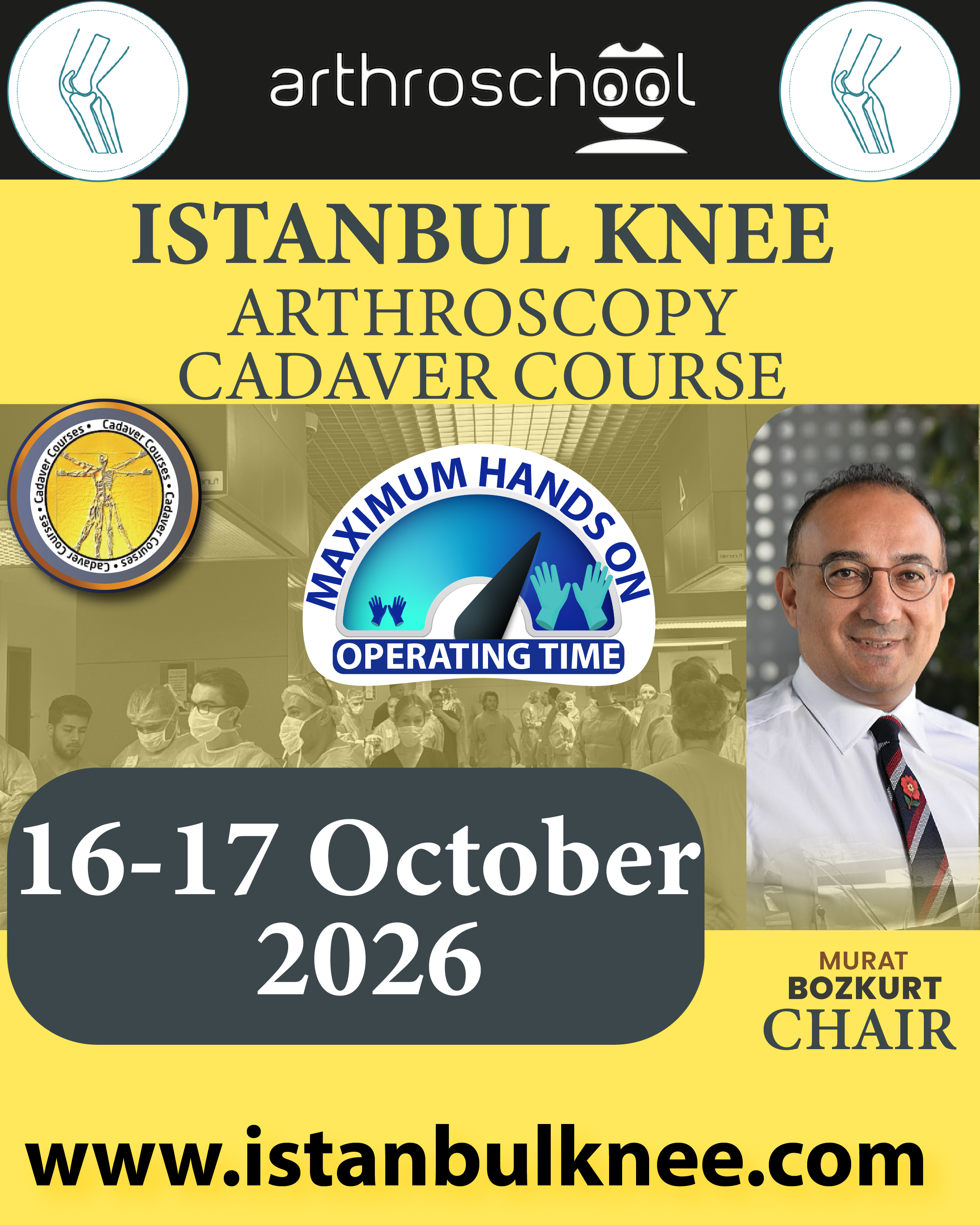Istanbul Knee Cadaver Course is a two-day, hands-on knee surgery program held on 16–17 October 2026 at Acibadem CASE, Istanbul,...